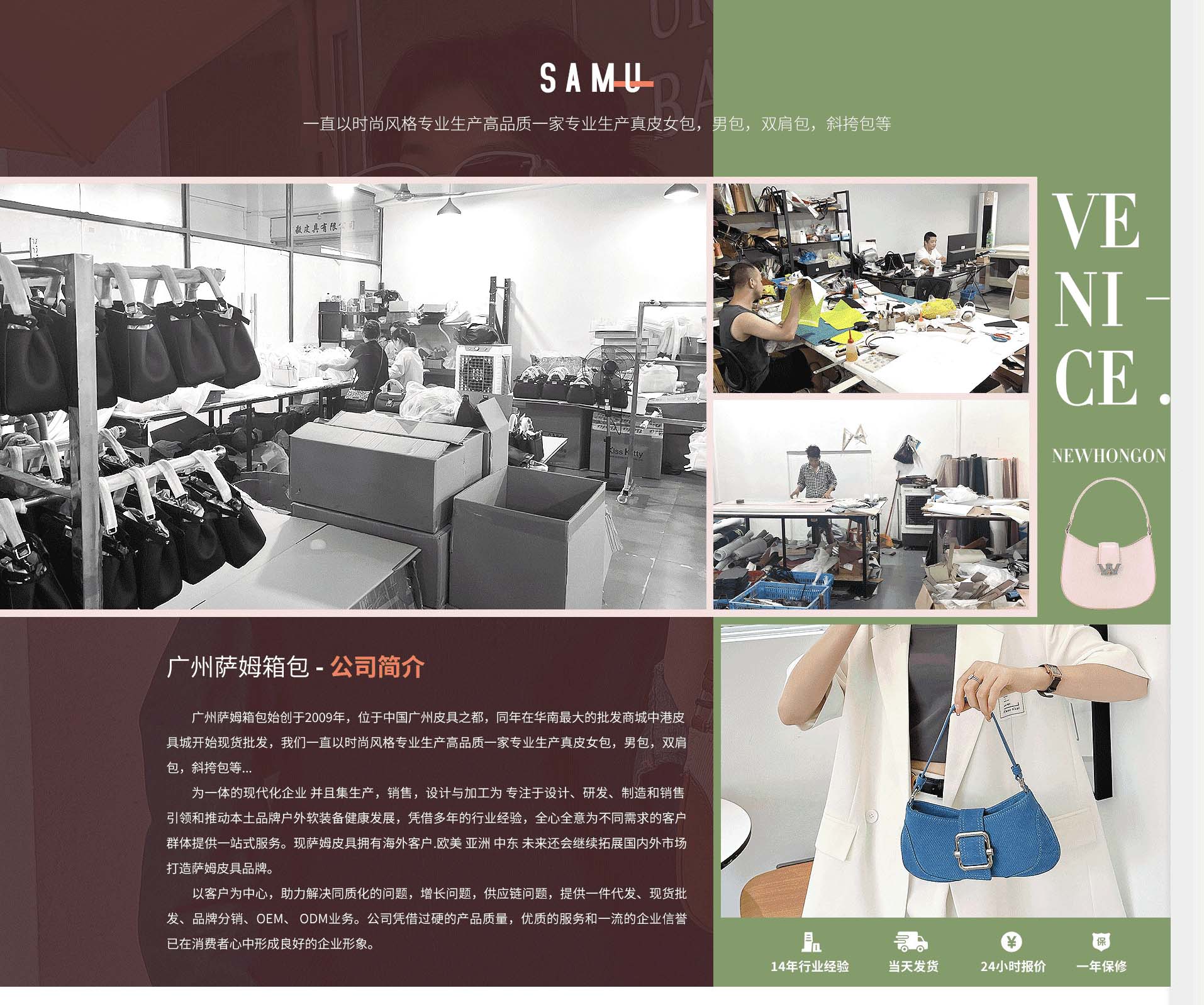 广州萨姆箱包始创于2009年,位于中国广州皮具之都,同年在华南批发商城中港皮具城开始现货批发,云顶国际官网 一直以时尚风格专业生产高品质一家专业生产真皮女包,男包,双肩包,斜挎包等...