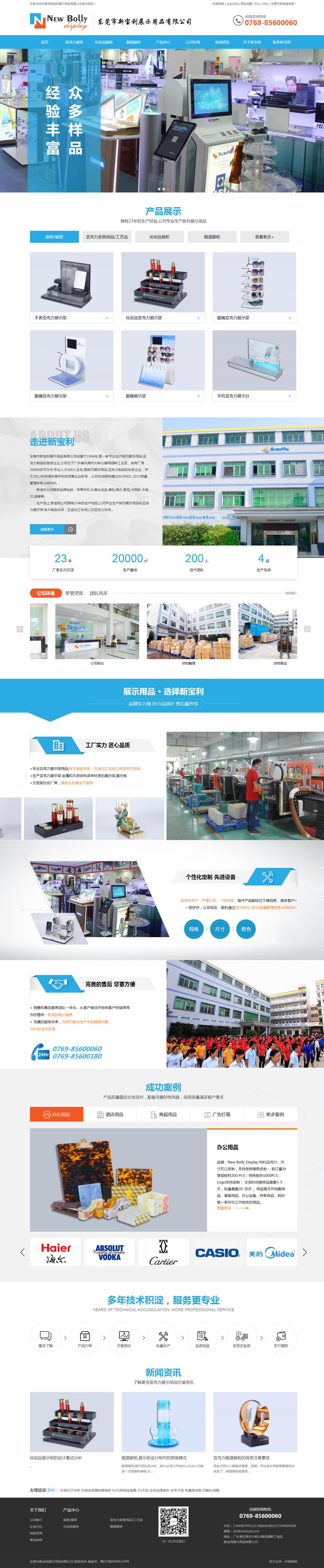 东莞市新宝利展示用品有限公司展示柜定制选择新宝利展示用品,专业生产陈列展示用品,亚克力制品的独资企业,自有厂房20000多平方米,专业人才200人左右,拥有23年的生产经验公司专业生产陈列展示用品,有木制品车间,五金加工车间以及亚克力车间。