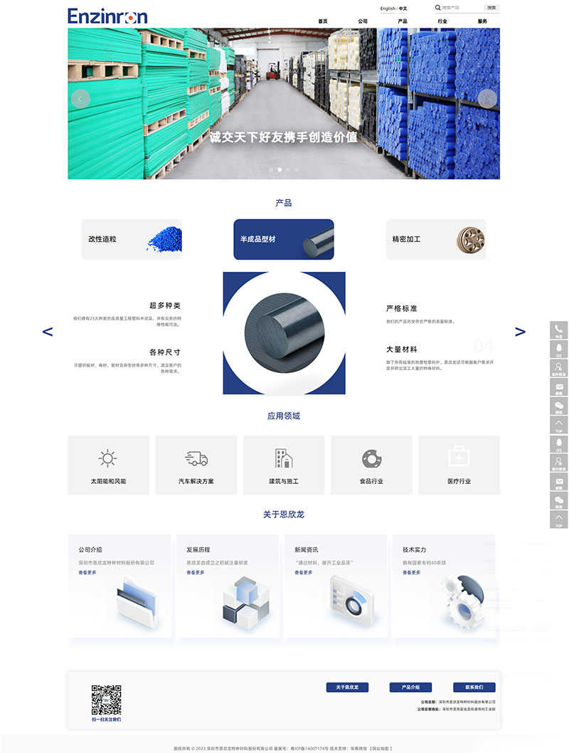 深圳市恩欣龙特种材料股份有限公司成立于2007年,是一家集研发、生产、加工、注塑和销售特种工程塑料为一体的国家高新技术企业。多年来,公司始终坚持“以人为本,科技创新,和谐发展,永续经营”的管理理念。经过多年的发展,公司已有自动化生产线200余条,产品系列包括: PEEK、 PPS、 PPSU、PSU、PEI、PTFE、PA、MC尼龙、PVDF、UHMW-PE、PC、POM、PETP、PBT、PBT、HDPE、PP、 ABS等板材、棒材、管材和异型材,同时拥有加工中心,CNC、铣床、雕铣机、注塑机、滚齿机等几十台高精密的数控加工设备,可向客户提供各种类型产品的深加工服务。