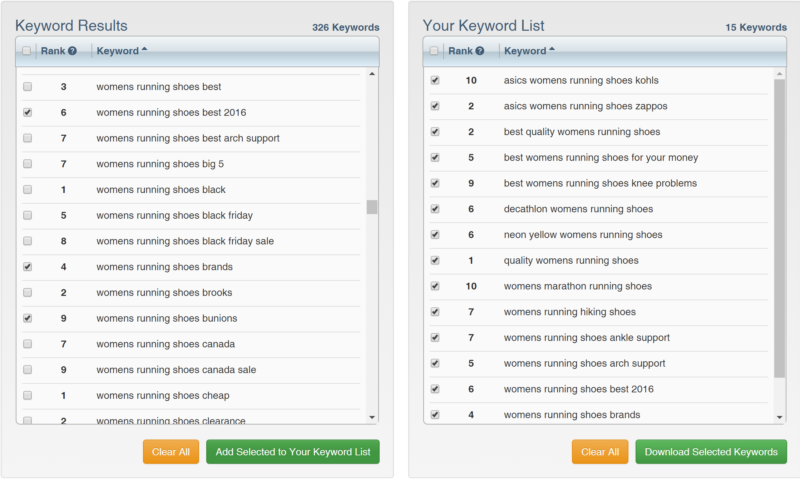 从左边的列表中,我找到了关键字,并添加到右侧的列表中以缩小一些选择。 根据搜索者输入的几个关键字,我可以看到一些问题: