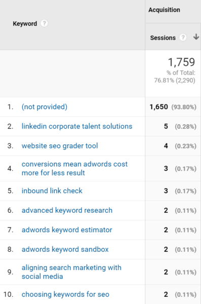 完成所有关键字的工作后,您可能会想知道如何在自然搜索工作中跟踪每个关键字的有效性。 这是棘手的地方 - 您无法真正准确地跟踪关键字以及您可能会喜欢。