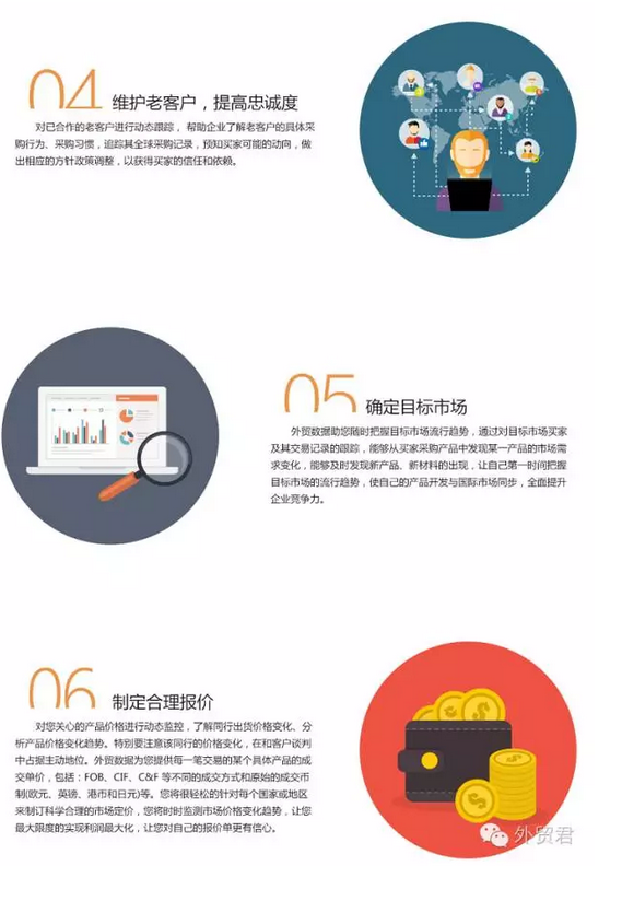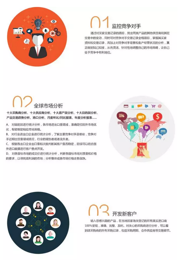 提供二十多个国家及时、全面、准确的贸易资讯,动态记录了每一单进出口货物的交易详情,实时提供了海外买家、进口规模、频率、价格、供货商、原产地等详尽信息。